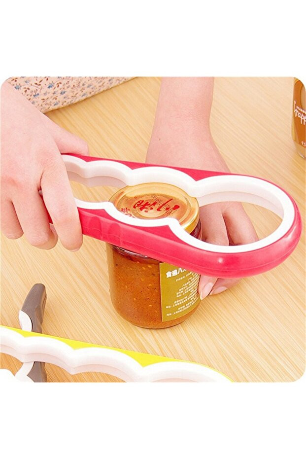 4 Boy Sıkışmış Şişe, Kavanoz ve Konserve Kapağı Açma Aparatı, mutfakta zor açılan kapaklara pratik çözüm sunar. Farklı ölçülerde tasarlanmış 4 ayrı açma bölmesi sayesinde küçükten büyüğe birçok kapak tipine uyum sağlar.