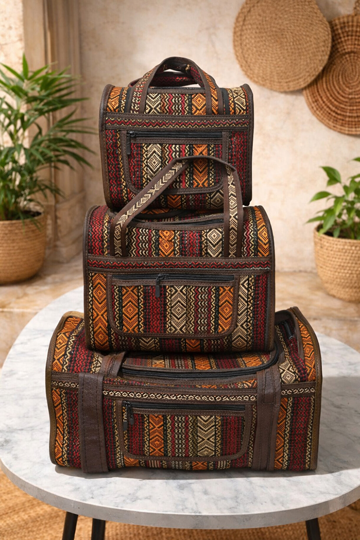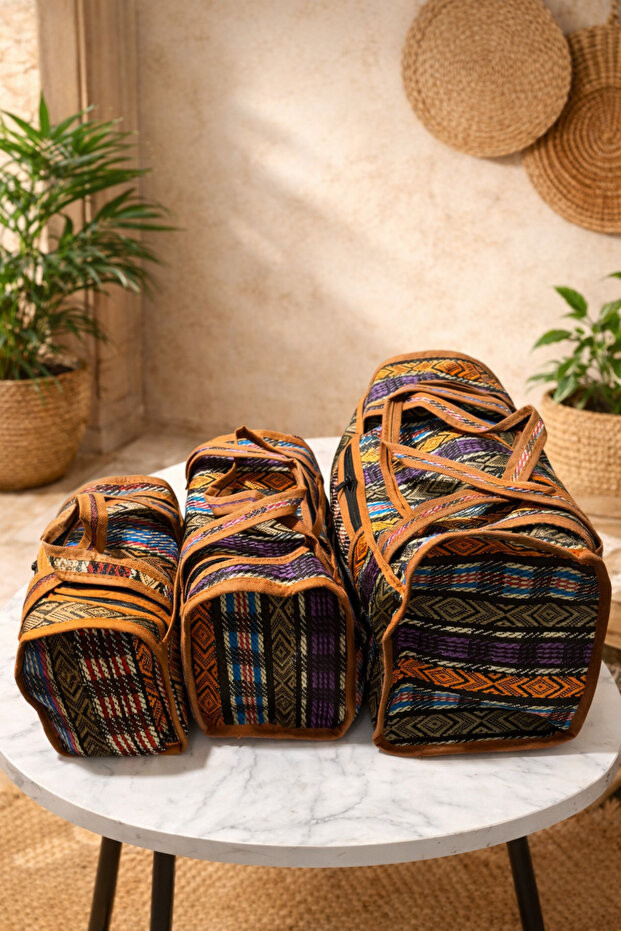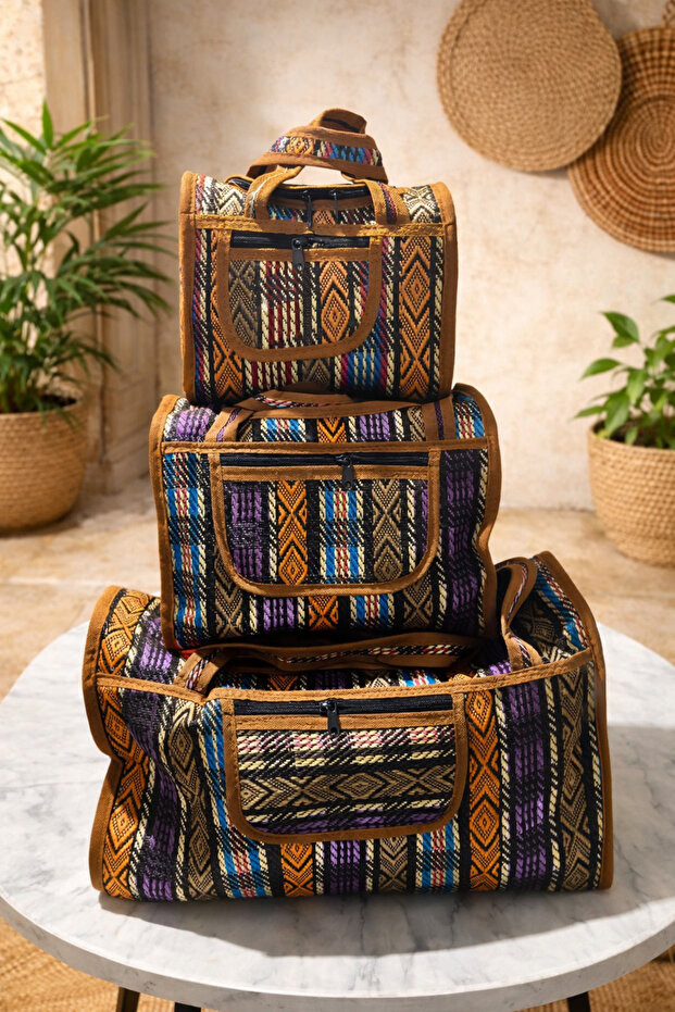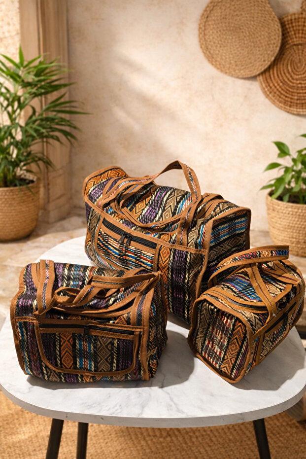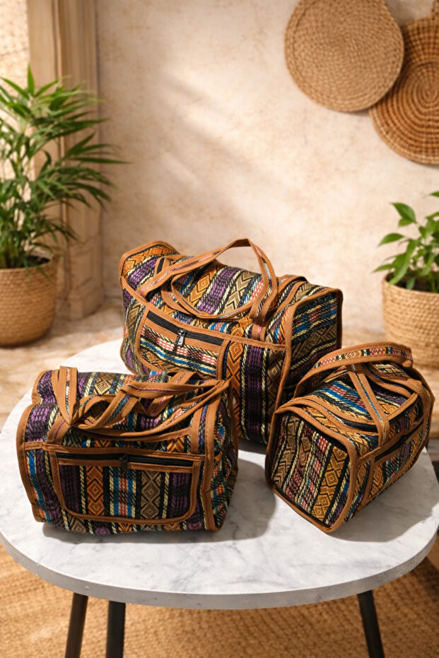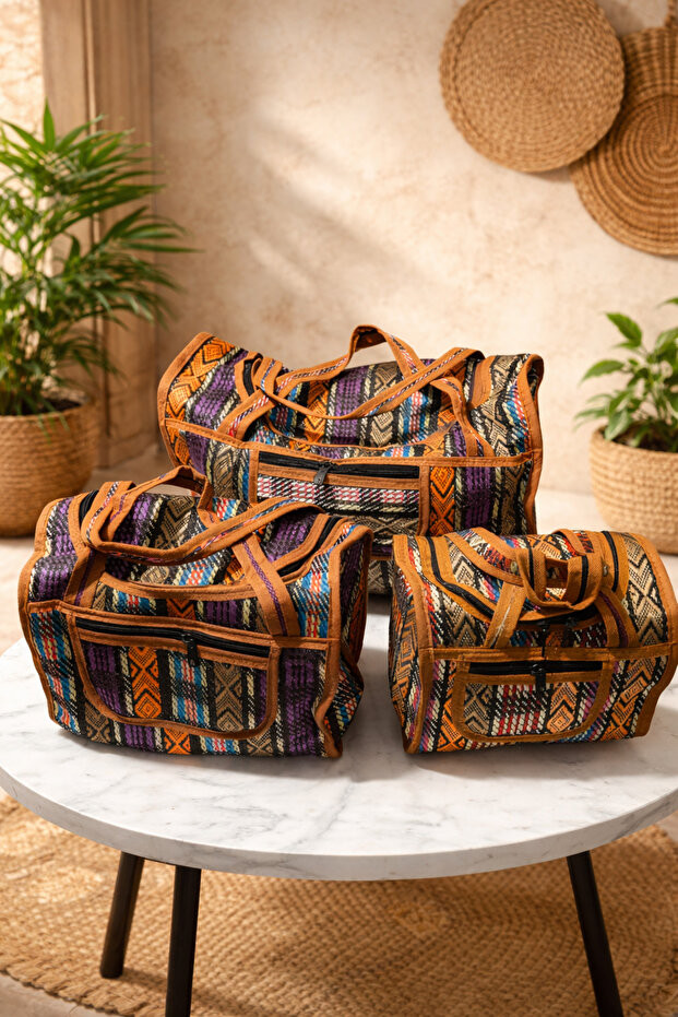 İran Desenli 3'Lü Hasır Çanta