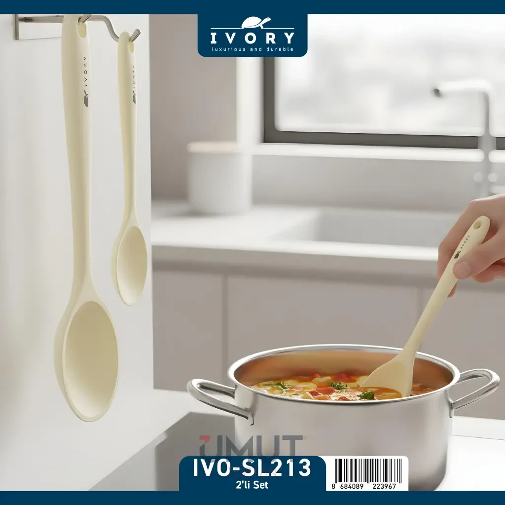 Ivory Silikon Mutfak Seti SL-213, spatula, kaşık ve diğer temel mutfak gereçlerini bir arada sunar. Farklı boyut ve işlevleri ile yemek hazırlığını daha pratik hale getirir.