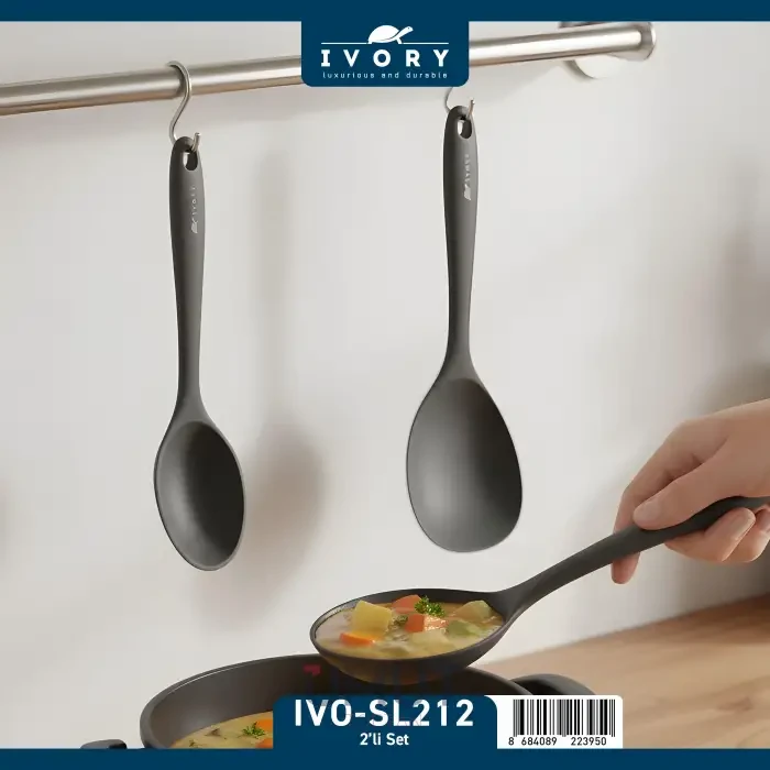 Ivory Silikon Mutfak Seti SL-212, spatula, kaşık ve diğer temel mutfak gereçlerini bir arada sunar. Farklı boyut ve işlevleri ile yemek hazırlama sürecini kolay ve hızlı hale getirir.