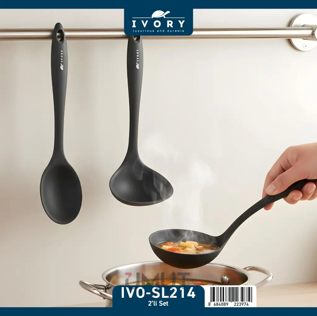 Ivory Silikon Mutfak Seti SL-214, spatula, kaşık ve diğer temel mutfak gereçlerini tek bir sette toplar. Farklı boyut ve işlevleri ile yemek hazırlama sürecinizi pratik hale getirir.